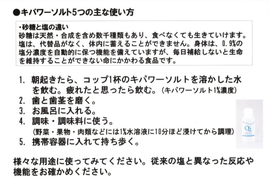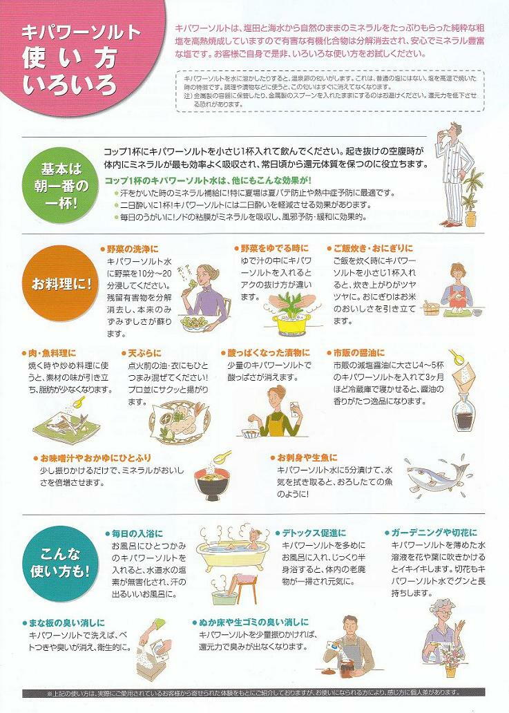 また自然環境のなかで手作りで作られておりミネラル含有量が高く、使い方は毎朝の飲料をはじめ、料理、入浴、歯磨き、洗顔等多彩です。